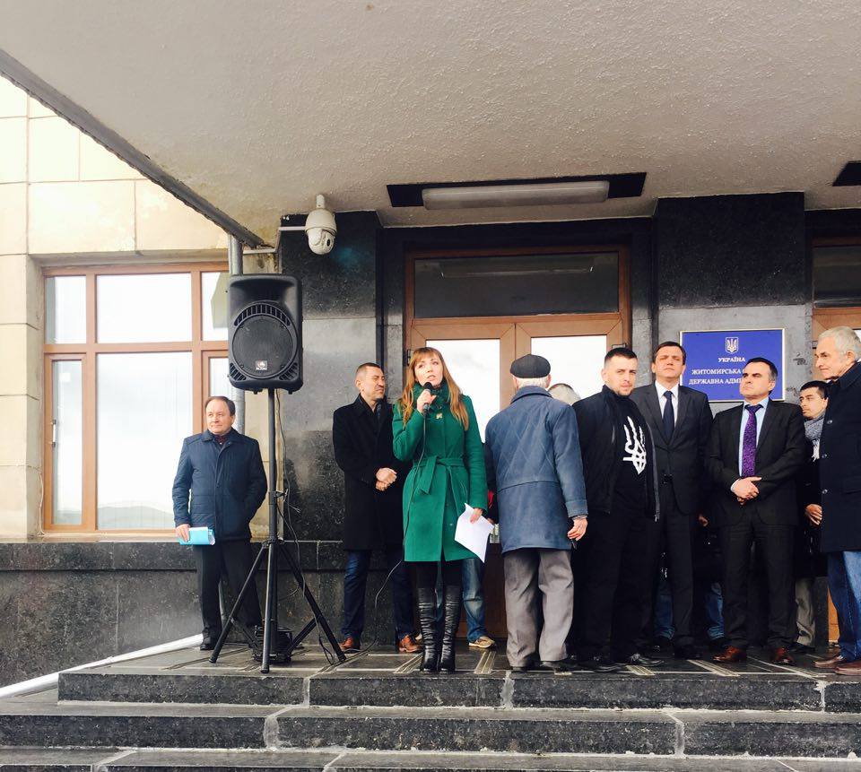 Голова Житомирської обласної парторганізації політичної партії "Українське об'єднання патріотів - УКРОП" Тетяна Пашкевич виступила зі зверненням до Президента України, Верховної Ради України, Кабінету Міністрів України на мітингу під стінами ОДА.