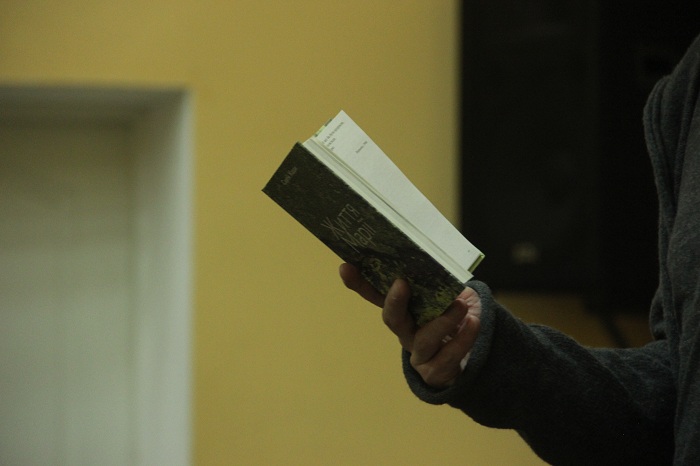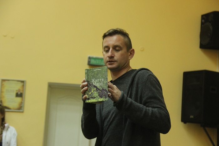 Письменник зачитав вірші з книги. Деякі з них були написані рік тому, в той час, коли він із друзями був на Донеччині.