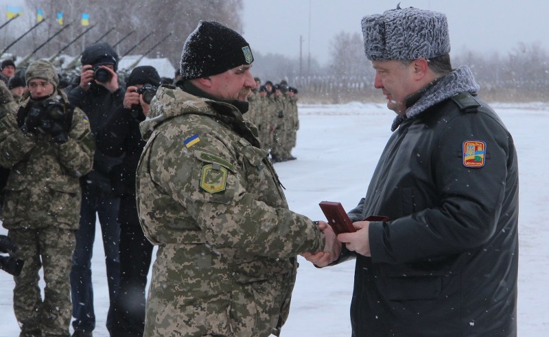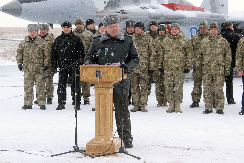 Звертаючись до військових, Глава держави привітав їх з Новим родом та Різдвом Христовим і висловив сподівання, що 2015 рік стане для України роком перемоги і роком миру. «Нова українська армія буде опорою і гарантом незалежності та територіальної цілісності держави», – заявив Президент.