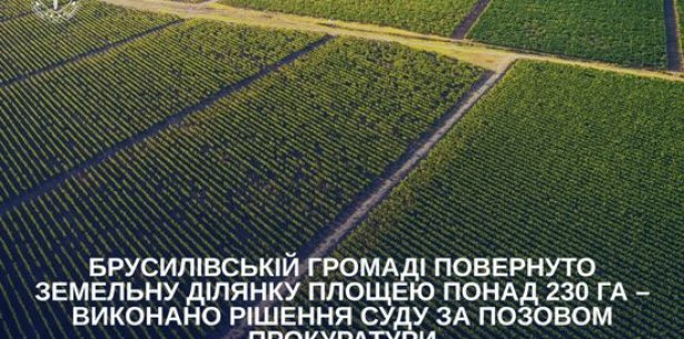 За результатами вжитих заходів представницького характеру товариство з обмеженою відповідальністю повернуло Брусилівській селищній раді земельну ділянку для ведення фермерського господарства площею понад 230 га.