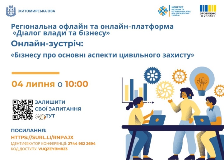 04 липня о 10:00 у рамках проєкту «Діалог влади та бізнесу» відбудеться чергове засідання на тему: «Бізнесу про основні аспекти цивільного захисту».