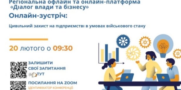 20 лютого о 09:30 у рамках проєкту «Діалог влади та бізнесу» відбудеться регіональний форум на тему: «Цивільний захист на підприємстві в умовах військового стану».