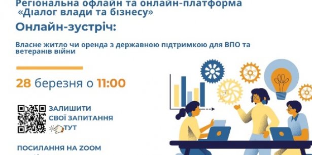 28 березня о 11:00 у рамках проєкту «Діалог влади та бізнесу» відбудеться чергове засідання на тему: «Власне житло чи оренда з державною підтримкою для внутрішньо переміщених осіб та ветеранів війни».