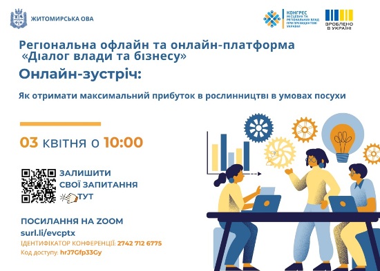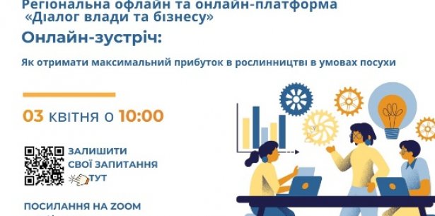 03 квітня о 10:00 у рамках проєкту «Діалог влади та бізнесу» відбудеться чергове засідання на тему: «Як отримати максимальний прибуток в рослинництві в умовах посухи».