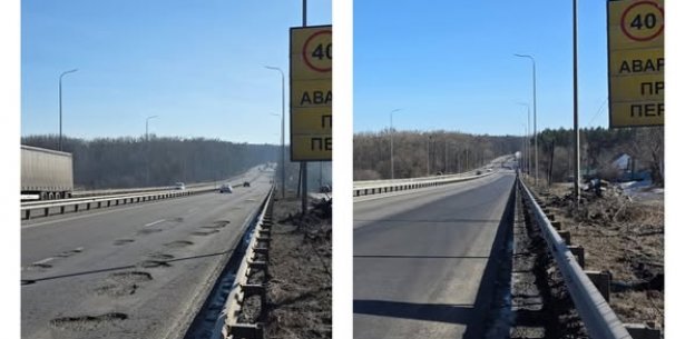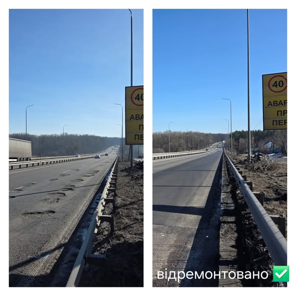 Пошкоджене покриття тут замінене вирівнюючим шаром асфальтобетону, локальні вибоїни відремонтовано. Як повідомляє Служба відновлення та розвитку інфраструктури у Житомирській області, упродовж двох тижнів березня на магістралі М-06 Київ - Чоп на території Житомирщини відновлено понад 26 тис. кв. м деформацій та пошкоджень. Безперешкодний рух ділянкою важливої логістичної артерії країни М-06 Київ - Чоп забезпечено.
