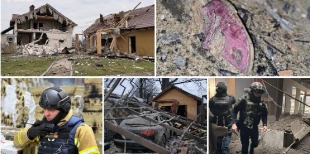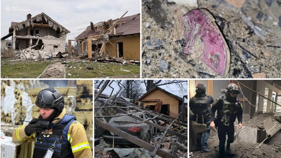 Рятувальники здійснюють гасіння пожеж та розбирають конструкції. Сапери ДСНС обстежують територію на предмет виявлення вибухівки.