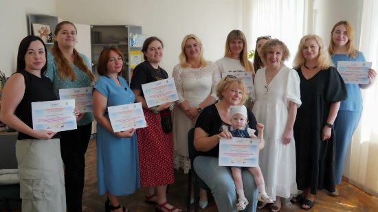 Тож 23 липня директорка Житомирського обласного центру соціальних служб Анна Антіпова та тренери Вікторія Сенкевич і Вероніка Мишківська вручили сертифікати та подарунки фахівчиням, які завершили навчання.