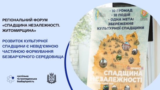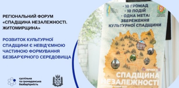 Культурна безбар’єрність як складова розвитку громад дедалі чіткіше проявляється через ініціативи, що поєднують збереження спадщини, освіту та економічний потенціал територій. Саме таким прикладом став регіональний форум «Спадщина незалежності. Житомирщина», який засвідчив перехід від окремої ініціативи до системного інструменту розвитку. Сьогодні це вже не пілотний проєкт, а повноцінна платформа взаємодії, де культурна спадщина розглядається як доступний ресурс для всіх — незалежно від місця проживання, соціального статусу чи рівня залученості до культурного життя.