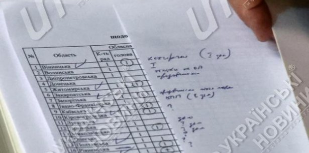"Після цього Березенко почав виписувати на аркуш, в яких областях крісла керівників облради віддаються БПП, а крісла першого заступника – "Батьківщині", а в яких, відповідно, навпаки", - пише видання.