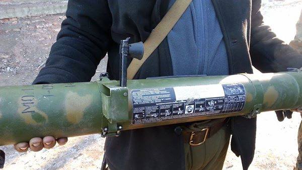 «Навстречу сепарский отряд. Говорю пацанам: не пригибайтесь, идите спокойно. За нами солнце было, они нас плохо видели. Мы махнули, типо свои. Подпустили ближе и взяли в плен 15 человек. Вот такие три хреновины забрали. Танк херячит с одного выстрела, что-то типа мини-птурса. 2014 года выпуска, РФ»
