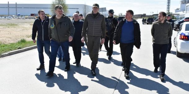 Міністр розпочав свій візит з міста Коростеня. Спільно із головою Житомирської ОВА Віталій Бунечко та його першим заступником Наталія Остапченко, головою Коростенської РДА Юрієм Тарасюком та міським головою Волдомиром Москаленком оглянули наслідки бойових дій та побували на заводі МДФ.