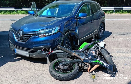 Перша ДТП сталася близько 11:30. За попередніми даними, 55-річний водій мотоцикла Kawasaki не дотримався безпечної швидкості та допустив зіткнення з автомобілем Renault Kadjar, який рухався попереду. За кермом кросовера перебувала 45-річна жителька Вінницької області.