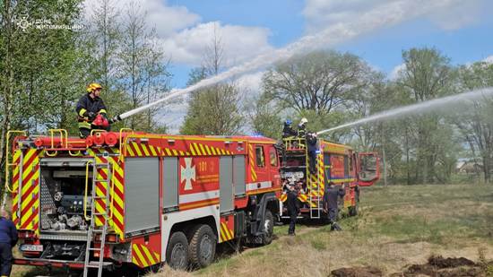 30 квітня в Коростенському районі пройшли масштабні навчання з ліквідації лісової пожежі. За легендою, через необережність відпочивальників загорілася суха трава, а вогонь швидко перекинувся на торфовище та ліс.