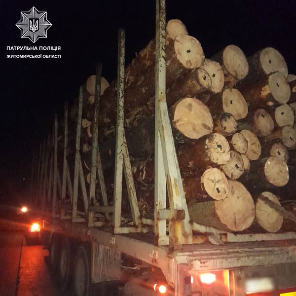 На Житомирщині патрульні виявили у водія підроблене посвідчення та невідповідність у документах на вантаж деревини