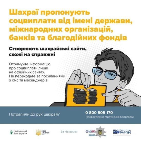 – перевіряйте інформацію про фінансову допомогу від держави лише через офіційні сайти державних установ або особисто зверніться до відповідних закладів для отримання консультації.