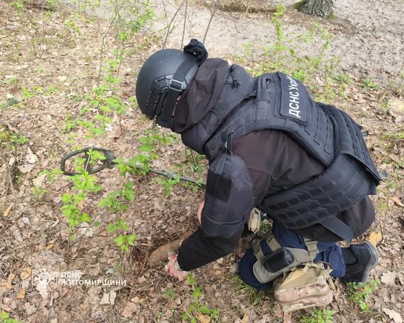 Сьогодні сапери ДСНС Житомирщини віпрацювали чергове звернення: місцеві жителі у лісовому масиві виявили мінометну міну часів Другої світової війни. Такі знахідки становлять серйозну небезпеку для людей, адже можуть здетонувати у будь-який момент.