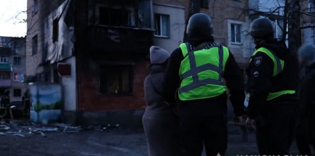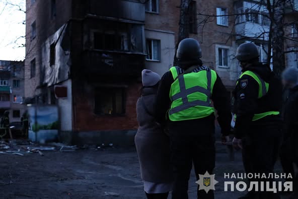Слідчо-оперативні групи відділу поліції №1 Житомирського РУП та ГУ Нацполіції області документують наслідки ворожої атаки. Вибухотехніки поліції проводять огляд місця події та вилучають уламки.