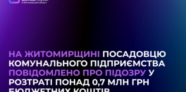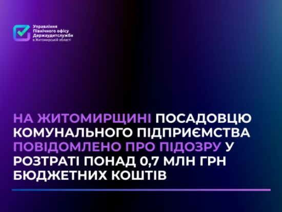 Посадовій особі комунального підприємства вже оголошено підозру за ч. 4 ст. 191 Кримінального кодексу України – розтрата чужого майна у великих розмірах шляхом зловживання своїм службовим становищем в умовах воєнного стану.