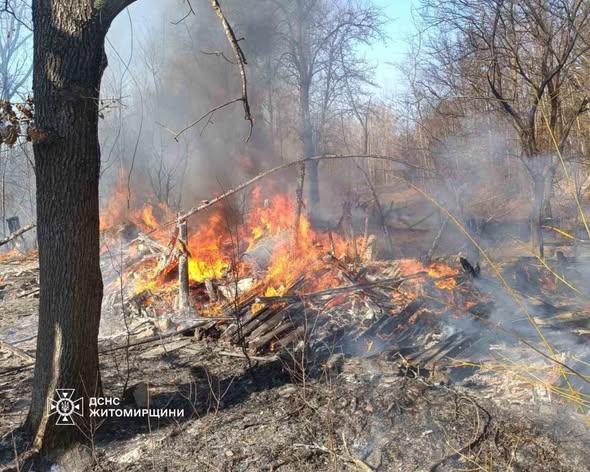 Ще одна аналогічна подія сталася у селі Рудокопи Житомирського району — вогонь із сухостою також дістався до господарчої споруди та знищив її.