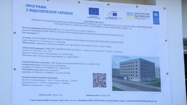 За Програмою відновлення України на Житомирщині погоджено реалізацію 12 важливих проєктів, серед яких: