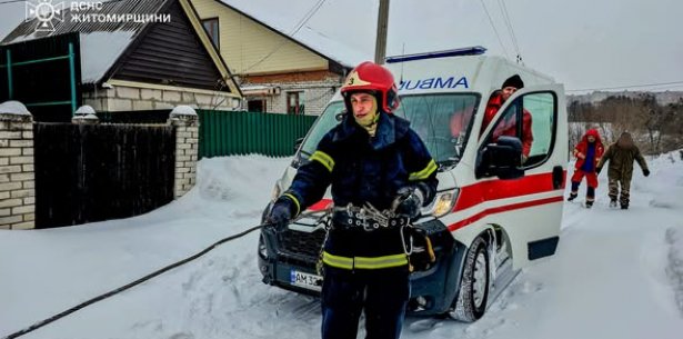 Через складні погодні умови рятувальники двічі залучалися до надання допомоги медикам екстреної медичної допомоги, автівки яких застрягли у снігових заметах. В обох випадках автомобілі доправляли пацієнтів до лікувальних закладів і забуксували на слизьких ділянках доріг. Події сталися у Житомирі та Бердичівському районі.
