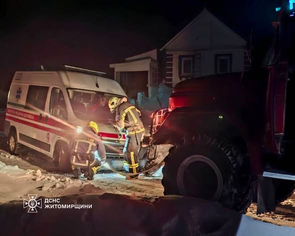 На Житомирщині рятувальники допомогли бригаді екстреної медичної допомоги, що потрапила у зимову пастку