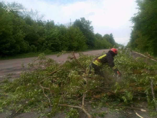 Подібна ситуація трапилася біля села Шевченкове в Коростенському районі. Там рятувальники також оперативно усунули перешкоду для транспорту.