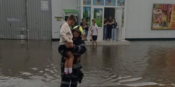 Через високу воду в приміщенні магазину люди не могли самостійно залишити будівлю, тож рятувальникам довелося допомагати їм виходити — деяких винесли на руках.