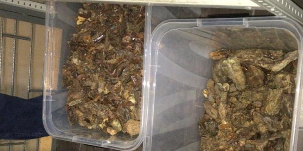 - десятки кілограмів незаконно видобутого бурштину-сирцю (у тому числі відбірного), розфасованого залежно від фракції, попередньо оціненого у понад 2,5 млн грн;