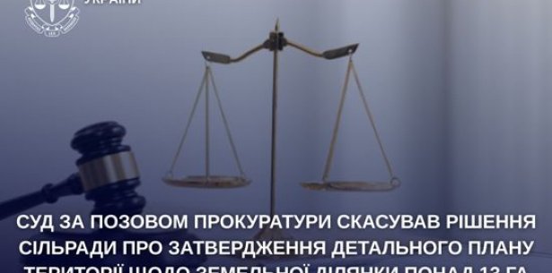 Рішенням місцевого окружного адміністративного суду задоволено позов прокуратури щодо визнання протиправним та скасування рішення сесії Оліївської сільської ради в частині затвердження детального плану території земельних ділянок загальною площею 13,2881 га у селі Оліївка.