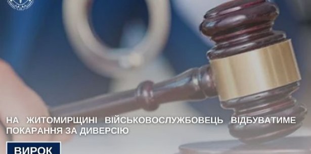 За публічного обвинувачення прокурорів Житомирської спеціалізованої прокуратури у сфері оборони Центрального регіону військовослужбовця визнано винуватим у вчиненні диверсії (ч. 2 ст. 113 КК України).