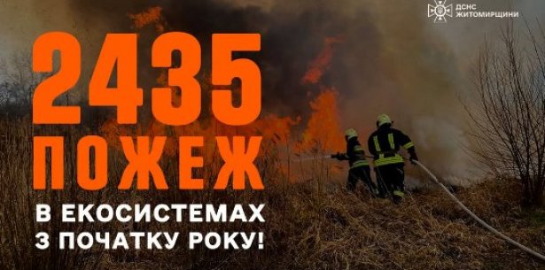 На Житомирщині з початку року вже виникло 2435 пожеж у природних екосистемах, вогнем пройдено майже 2900 га території!