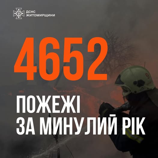 На Житомирщині за минулий рік виникло понад 4652 пожежі