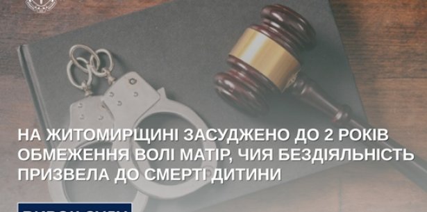 На Житомирщині засуджено до 2 років обмеження волі матір, чия бездіяльність призвела до смерті дитини