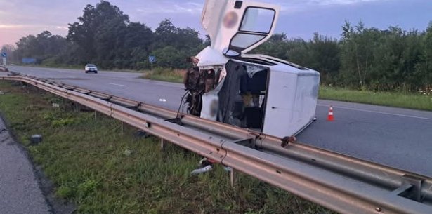 Попередньо, 60-річний житель м. Звягеля, керуючи автомобілем Fiat Ducato, здійснив наїзд на колесовідбійник. У результаті транспортний засіб перекинувся.