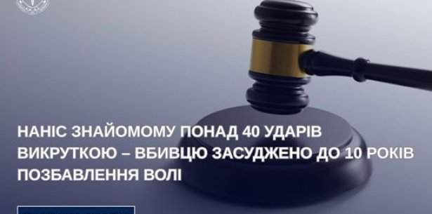Наніс знайомому понад 40 ударів викруткою – вбивцю засуджено до 10 років позбавлення волі
