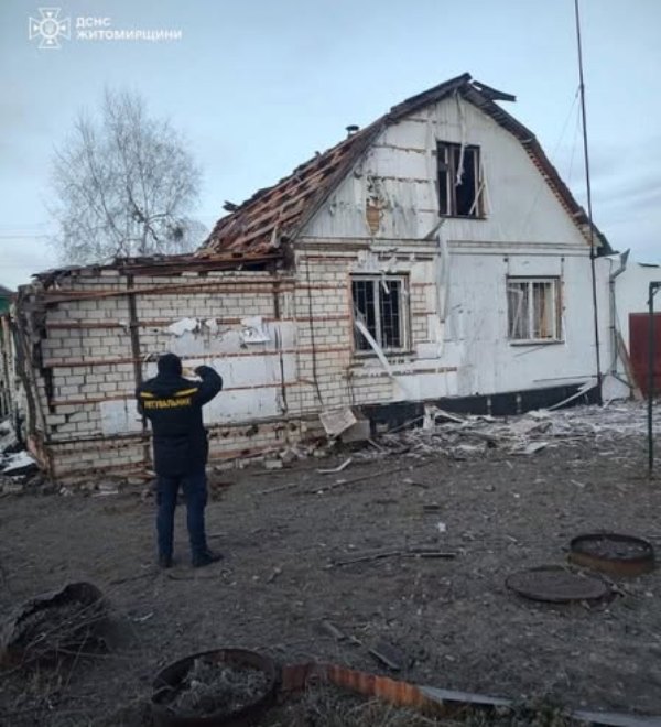 Наслідки ворожої атаки на Житомирщину: пошкоджені приватні будинки та господарча будівля