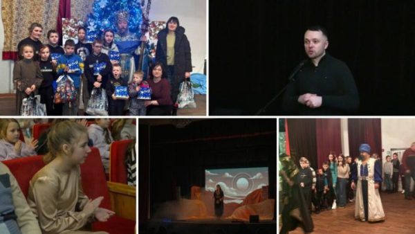 — Ми раді вітати вас на цьому святі, адже Новий рік та Різдво — це час віри в дива, радості та тепла. Я впевнений, що кожен із вас цього року був справжнім молодцем! Сьогодні на вас чекає дивовижна вистава та солодкі подарунки, адже ви цього заслуговуєте.