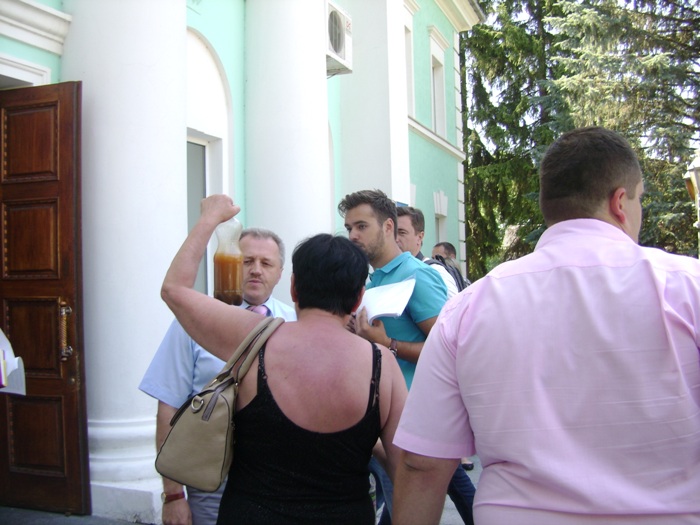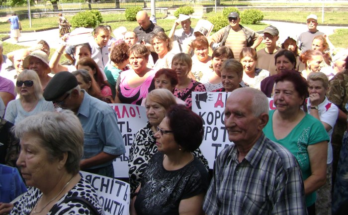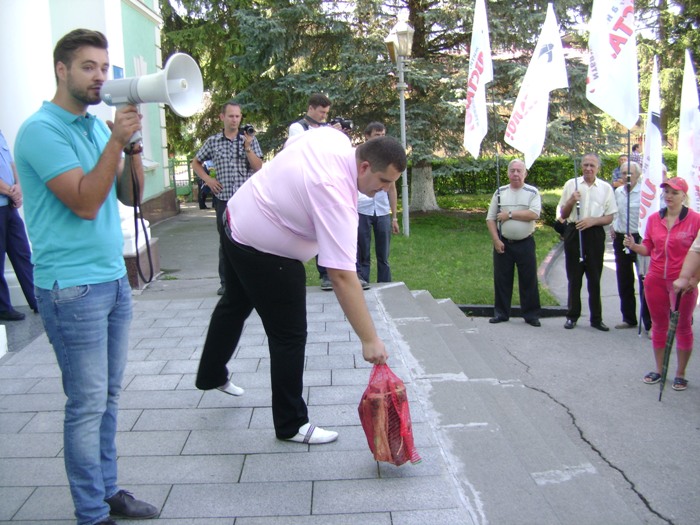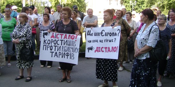 Коростишів, новини - Це сталося під час акції протесту проти злочинних тарифів 11 липня. Під стінами приміщення Коростишівської райдержадмінстрації та районної ради зібралося більше сотні людей з плакатами на яких майоріли гасла: «Коростишів проти вбивчих тарифів», «Поясніть за які кошти платити по тарифах», «Припиніть експерименти над людьми», «Це вже Європа, чи буде ще гірше?» та інші. Мітингувальники вимагали справедливих тарифів на житлово-комунальні послуги, які б відповідали доходам. З цією метою люди склали звернення до Президента України, Верховної Ради та Кабінету Мінстрів України з підписами більше ніж на ста аркушах та вимагали у представників влади міста та району їх підтримати.