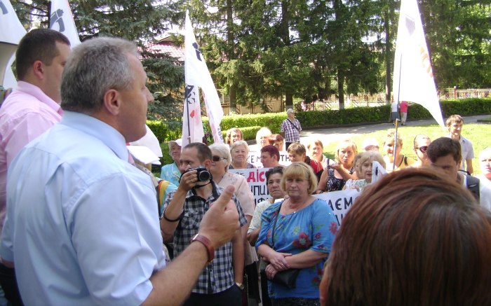 У представників районної влади мітингувальники вимагали підписатися під зверненням. Голова районної ради сміливо виконав вимогу. З головою райдержадміністрації ситуація виявилася складнішою. Василь Купрійчук не поставив свій підпис, натомість, пообіцяв мітингувальникам звернутися до Президента від себе особисто, як від офіційної особи з листом, також завірив, що зустрінеться з мером, стосовно вирішення питання неякісної води. Та це людей незадовольнило і викликало в них сильне обурення. Емоційно та з натиском мітингувальники вимагали в голови райдержадміністрації Василя Купрійчука підписатися під зверненням, або йти у відставку. Мирний мітинг ледве не перетнув межу, що відділяла його від бійки. На адресу Василя Купрійчука лунали образи.