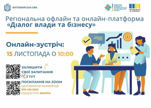 У Житомирі розпочала роботу регіональна офлайн та онлайн-платформа для комунікації бізнесу із представниками влади «Діалог влади та бізнесу», яка впроваджується в рамках роботи Конгресу місцевих та регіональних влад при Президентові України. Головна її мета – забезпечення максимальної взаємодії між бізнес-середовищем та владою на всіх рівнях.