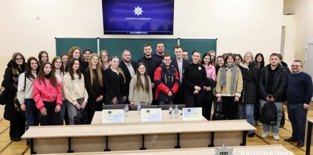 Зі студентами спілкувалися ветерани війни – помічник начальника ГУНП в області з ветеранської політики Кирило Гиндич і працівник Управління інформаційно-аналітичної підтримки ГУНП Олександр Неголюк, а також начальниця ювенальної превенції управління превентивної діяльності ГУНП Марія Зуб.