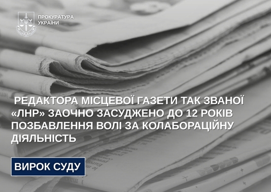 За підтримання публічного обвинувачення прокурорів Житомирської обласної прокуратури жителя Луганщини визнано винним в організації та проведенні заходів політичного характеру, здійсненні інформаційної діяльності у співпраці з державою-агресором та його окупаційною адміністрацією, спрямованих на підтримку держави-агресора (ч. 6 ст. 111-1 КК України).