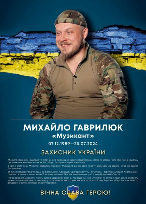 Михайло Гаврилюк (позивний «Музикант») — піаніст та звукорежисер.
