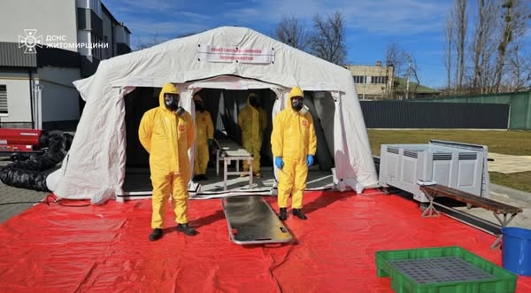 Група радіаційного, хімічного та біологічного захисту продемонструвала роботу пункту деконтамінації. Це місце, що передбачає проведення комплексу заходів, направлених на механічну очистку шкіри шляхом санітарної обробки постраждалих, які забруднені радіоактивними або хімічними речовинами.
