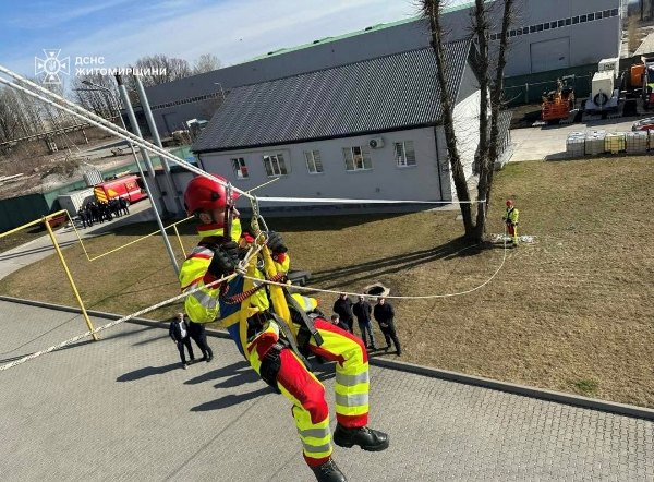 Верхолази ДСНС, використовуючи башту підрозділу, продемонстрували процес та способи порятунку людей з висоти.