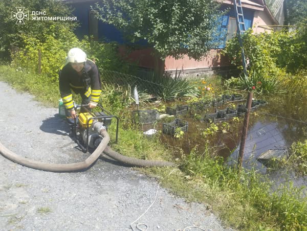 Зокрема, 1 кубометр води відкачали у с. Старосільці Житомирського району. Також понад 4 години працювали у м. Житомир, де було відкачено 100 куб.м.