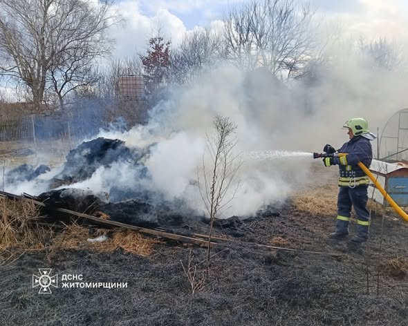 Протягом минулої доби рятувальники Житомирщини ліквідували три пожежі в природних екосистемах. Вогонь знищив суху рослинність на загальній площі понад 4 гектари.