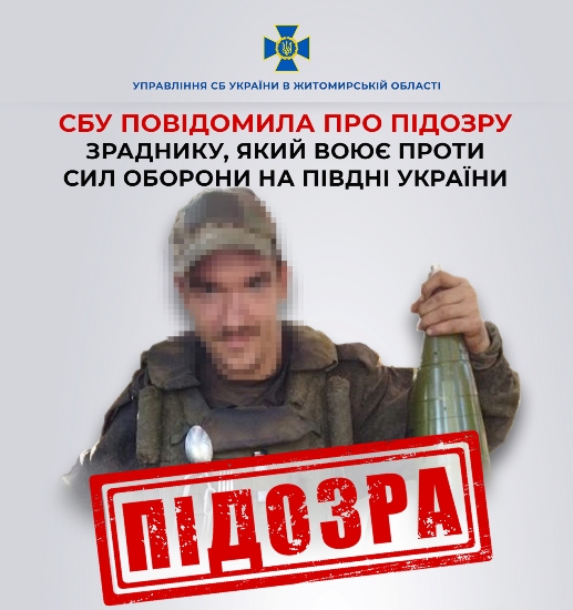 Служба безпеки Житомирщини зібрала доказову базу на ще одного зрадника з Донеччини, який перейшов на бік загарбників та воює проти України у складі рашистської армії.