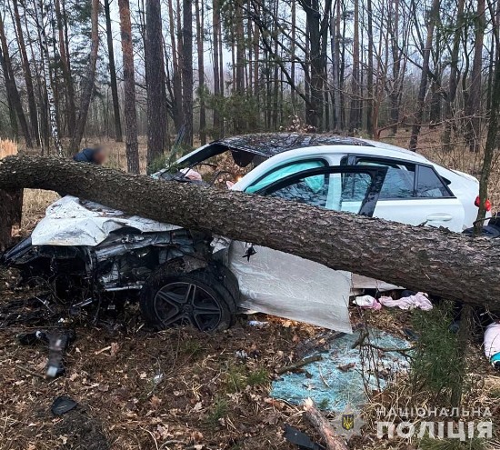 Попередньо, 37-річний водій автомобіля «Mercedes», житель Київщини, рухаючись у напрямку міста Житомира, здійснив зіткнення з автобусом, а потім виїхав за межі проїзної частини, де зіткнувся з деревом.